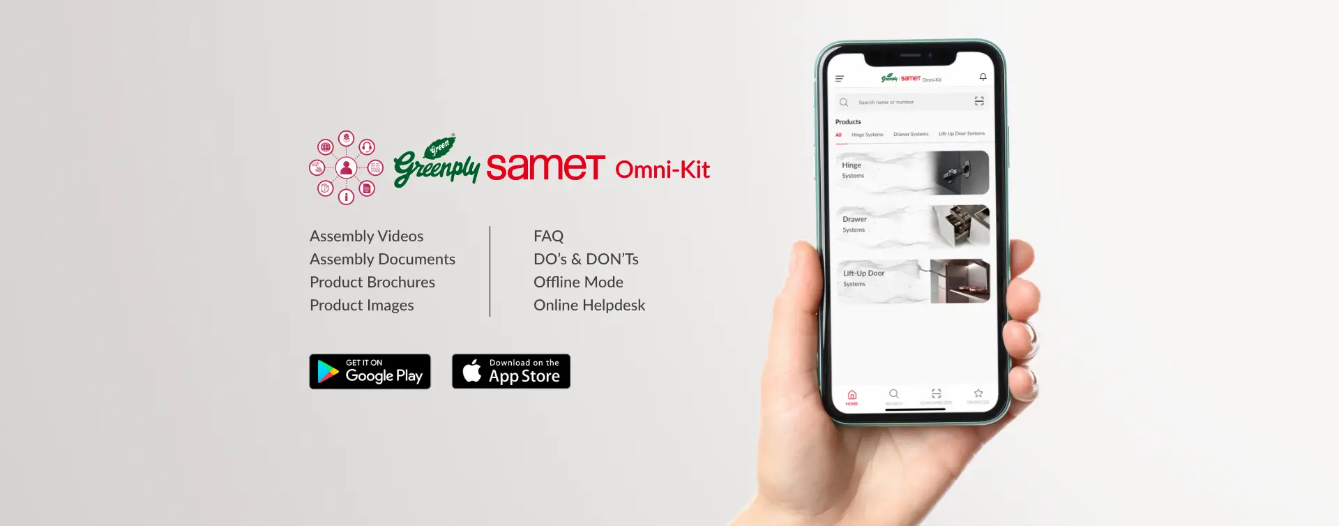 Welcome to Greenply-SAMET, a collaborative venture between Greenply and SAMET, leading furniture accessory manufacturers. Our partnership brings together the expertise and innovation of two industry pioneers, combining the craftsmanship of SAMET with the global presence of Greenply. With a commitment to quality and sustainability, Greenply-SAMET is dedicated to creating exceptional furniture accessories that elevate living spaces worldwide.